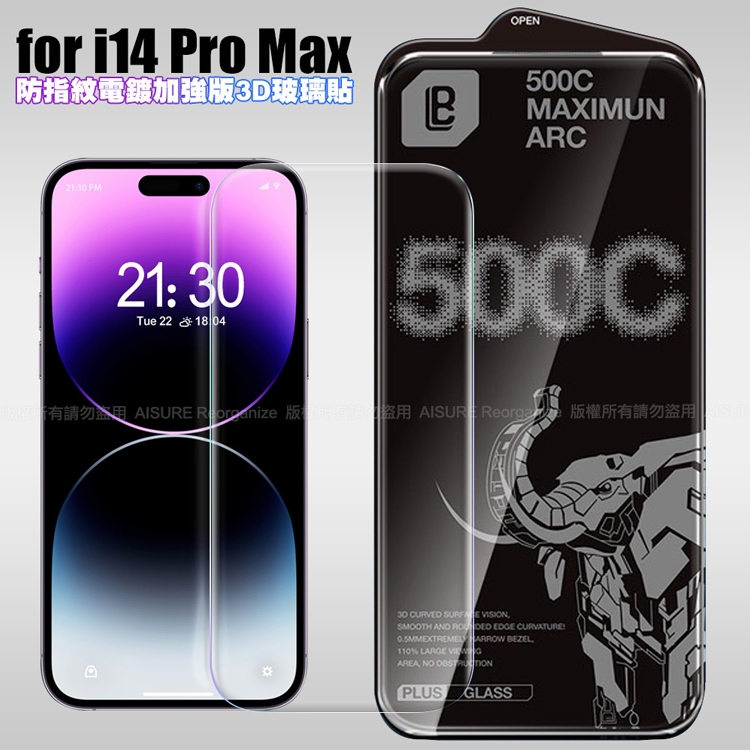 LB iPhone 14 Pro Max 防指紋電鍍加強版3D曲面玻璃貼