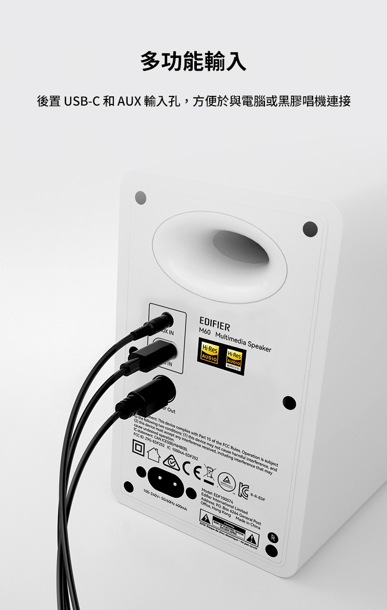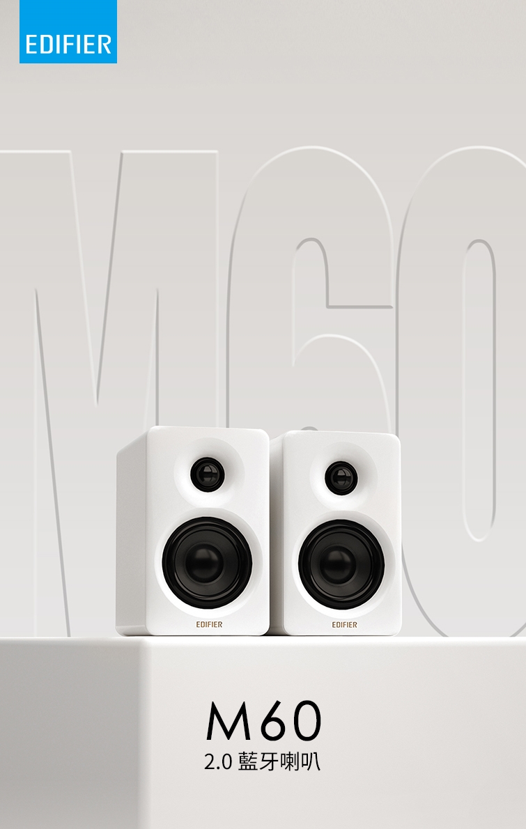 EDIFIER M60 是一款通過 Hi-Res 有線與無線雙金標認證的高解析 2.0 桌面喇叭,專為追求旗艦級無損音質與多場景桌搭使用者設計,提供強勁輸出、精準音場與多元連線方式。