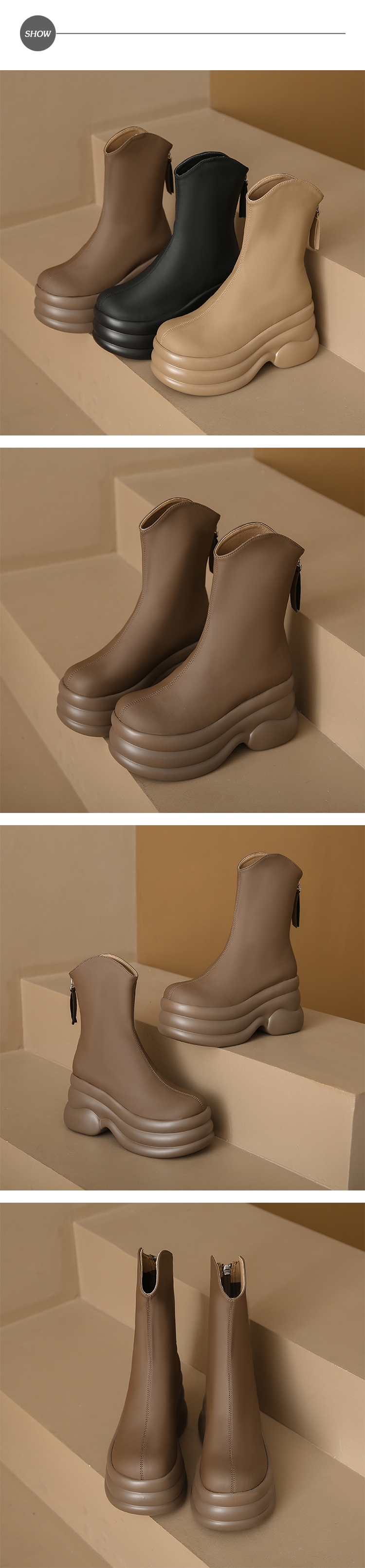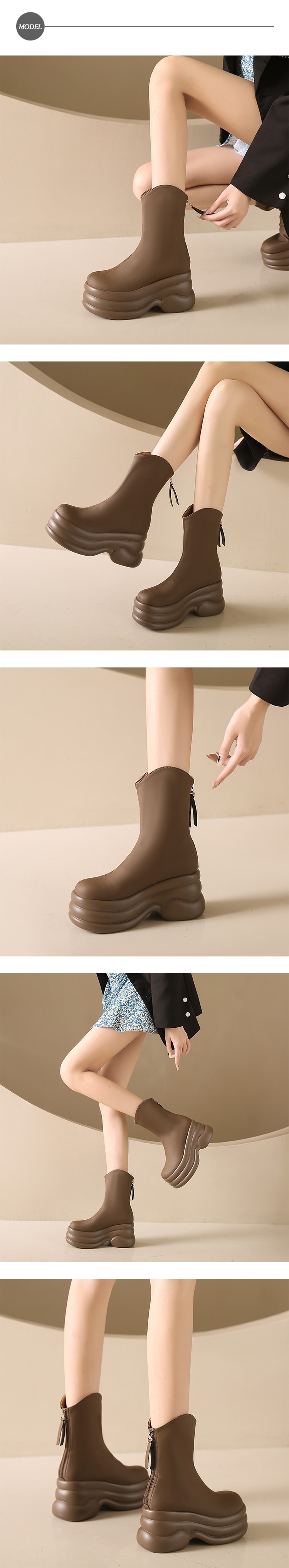 【HEDY】純色鬆糕厚底中筒靴/純色美腿效果V口修飾鬆糕厚底中筒靴 女鞋 棕