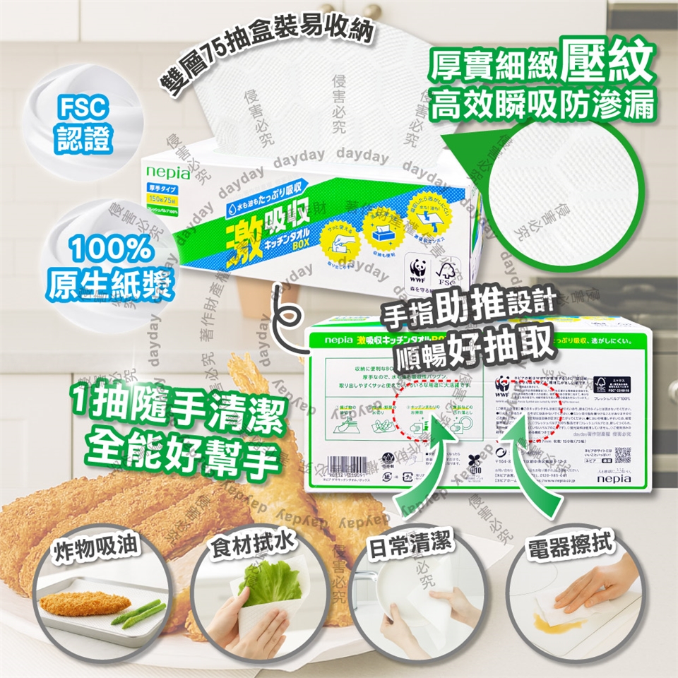 ●品名:激吸收厚實壓紋鎖水除油抽取式廚房清潔紙巾