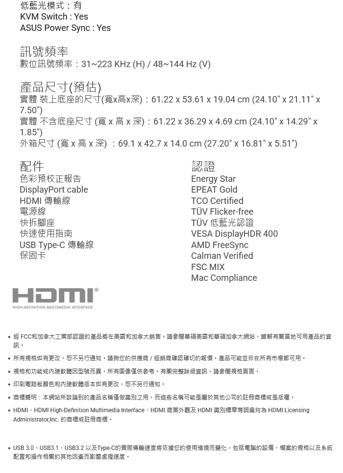 ※以上規格資料若有任何錯誤,以原廠所公佈資料為準。br/若有下列情形,將會影響商品退貨權益 br/● 商品、使用手冊、相關配備、贈品或配件不齊全。 br/● 商品、外盒外觀污損或刮傷(含外盒條碼撕除)。 br/● 商品如有視窗貼紙保護已受污損或刮傷。 br/● 商品保固貼紙毀損。 br/● 鑑賞期內已註冊之商品。 br/● 已拆封之贈品、電腦軟體、遊戲光碟、CD、VCD、DVD。 br/● 其他於本公司商品銷售網頁上有特別載明者。