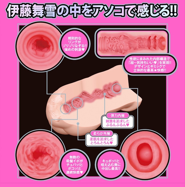 盡情體驗伊藤舞雪的私密之處! 追求真實柔感的嫩滑外層加上追求強烈快感的彈力內層,以充滿慾望的設計與結構,完美重現那次「生插」時的極致快感!