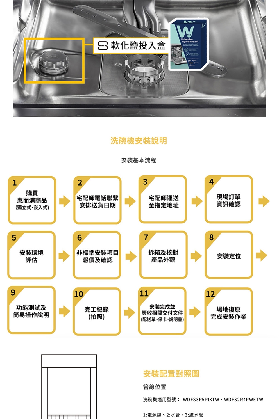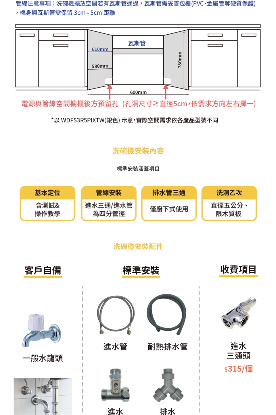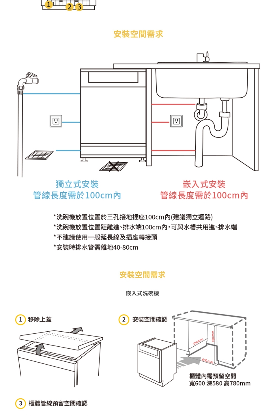 ● [ 買洗碗機送免費場勘.基本安裝 ] 接到訂單之後,將由工班聯繫場勘,場勘當下工班確認環境可安裝,會再另行約配
