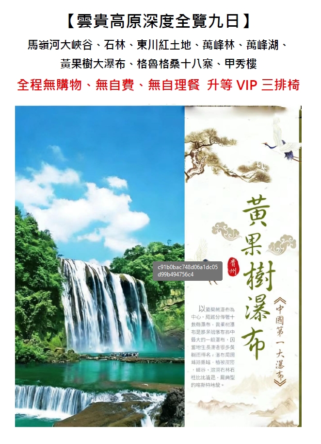 【第7天】 興義-安順【黃果樹大瀑布(含環保車+雙程扶梯)、陡坡塘景區、天星橋景區】 |