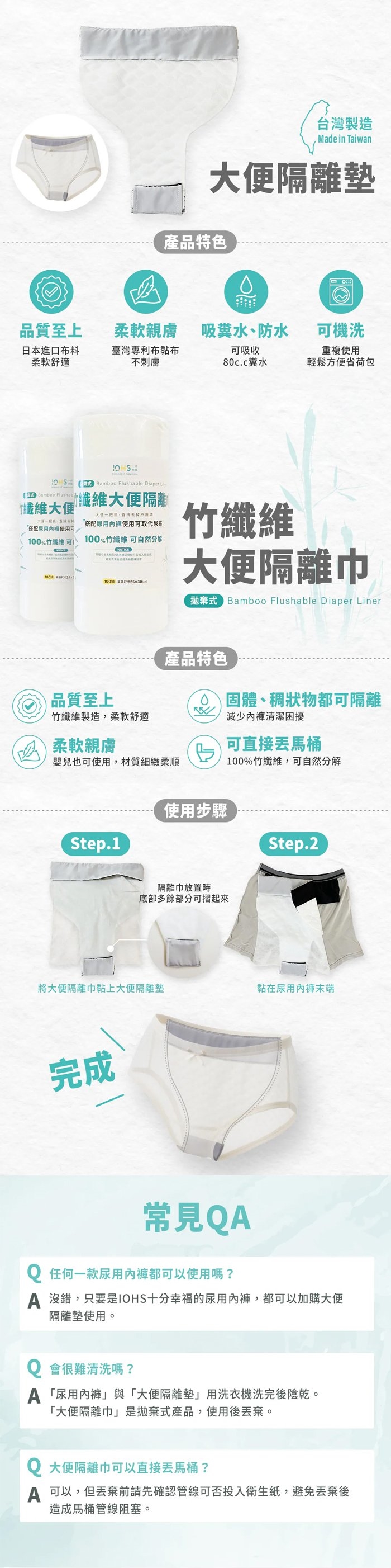 ◆ 搭配尿用內褲 大便隔離墊 取代尿布