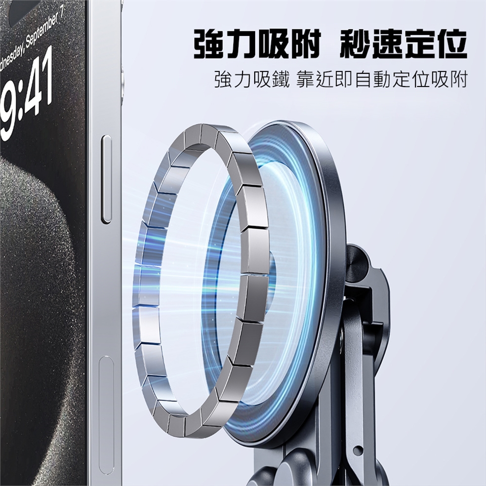 超強磁吸環,完美吸附Magesafe手機,不怕手機、平板滑落(若手機平板無Magesafe,則可使用磁吸貼片)