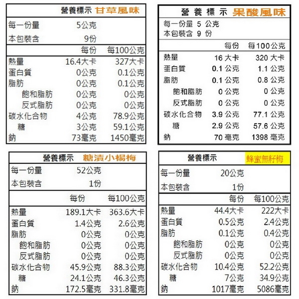 - 注意事項:梅子表面上的白色粉末,是鹽巴及甜味劑的結晶物,請安心食用
