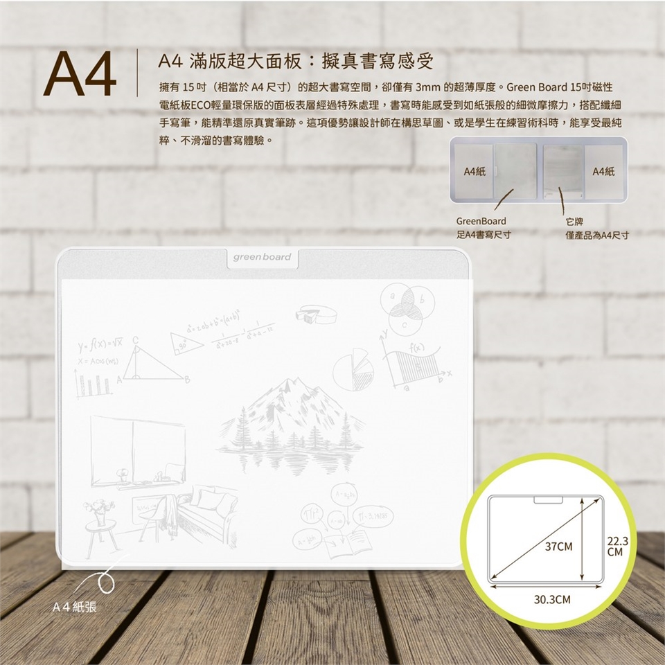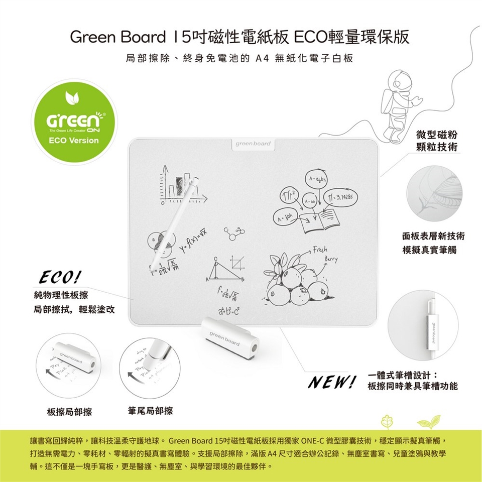 【Green Board】15吋磁性電紙板 ECO輕量環保版 局部擦除、終身免電池,你的第一塊 A4 無紙化電子白板