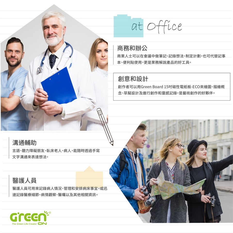 商務和辦公:商業人士可以在會議中做筆記、記錄想法、制定計劃,也可代替記事本、便利貼使用, 更是業務解說產品的好工具 。