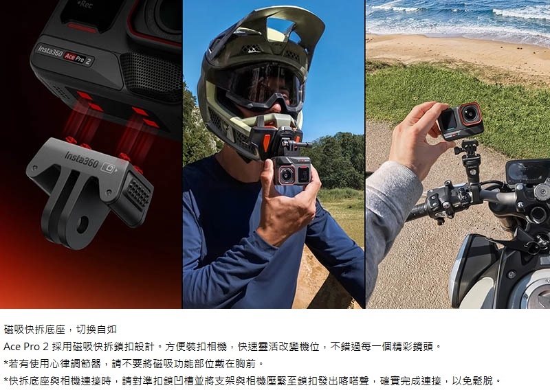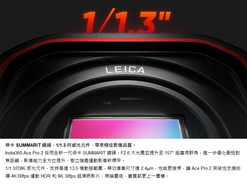 Insta360 Ace Pro 2 是與徠卡(Leica)聯合研發的旗艦廣角運動相機,搭載 AI運算+專業影像 雙晶片系統,帶來出眾畫質表現及更加進化的夜拍能力。配備 2.5 吋翻轉螢幕和堅固相機機身,加上直覺性的拍攝功能、多種智慧模式與化繁為簡的 AI 剪輯方式,讓運動拍攝聰明、直觀且輕鬆。
