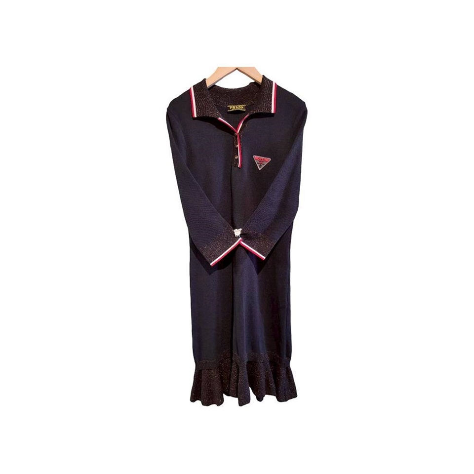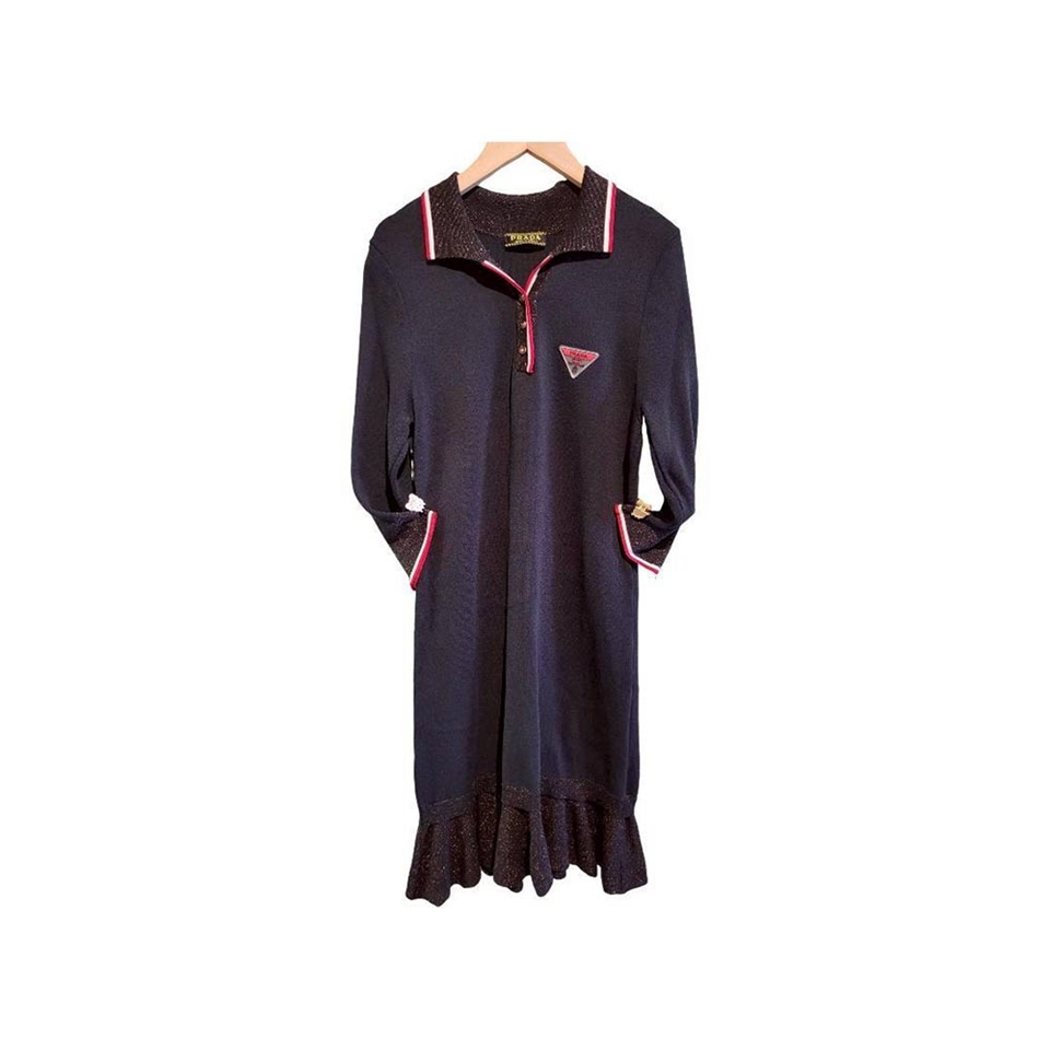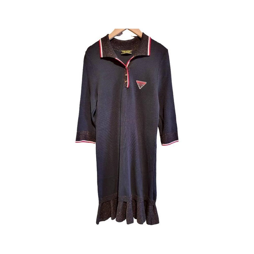 PRADA 黑色針織洋裝以品牌標誌性的極簡美學為核心,將俐落設計與細膩質感完美融合。經典黑色調低調而充滿力量,展現洗鍊、自信且不受時間限制的時尚風格,無論任何場合皆能成為衣櫥中的關鍵單品。