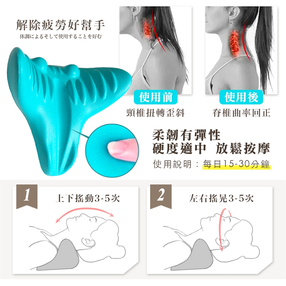 本枕為舒緩型按摩用品,非醫療器材。孕婦、頸椎疾病者請先諮詢醫師,使用不適請立即停止。