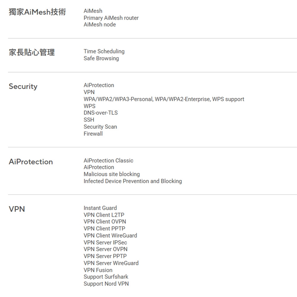 全方位 VPN 功能支援多達 30 家服務供應商,並支援點對點 VPN。