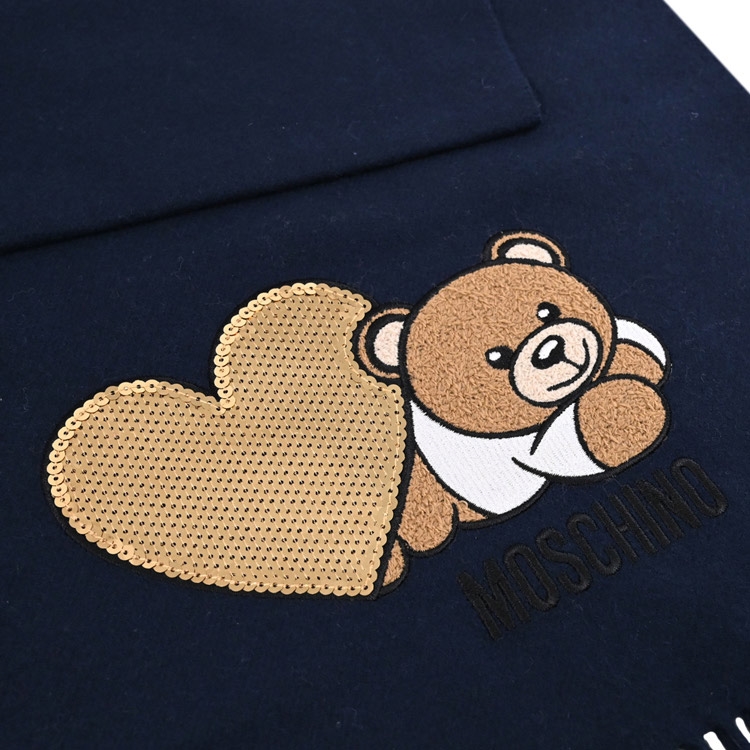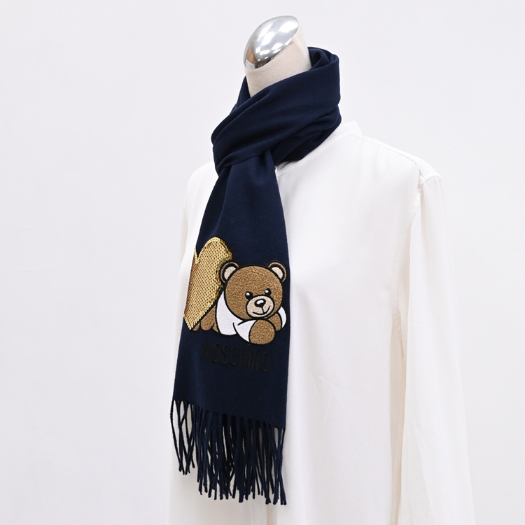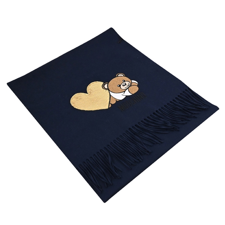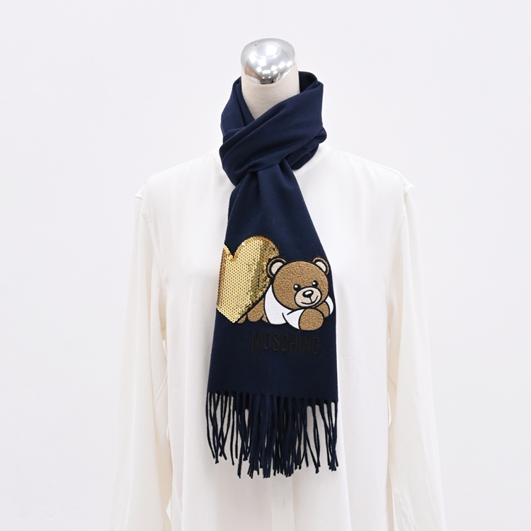 品牌小熊圖案+金色亮片心形貼花,100%MERINO WOOL羊毛圍巾,輕薄不厚重舒適好配戴,無論送禮或自用皆適宜!