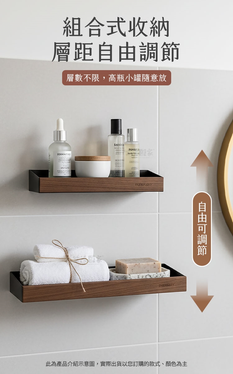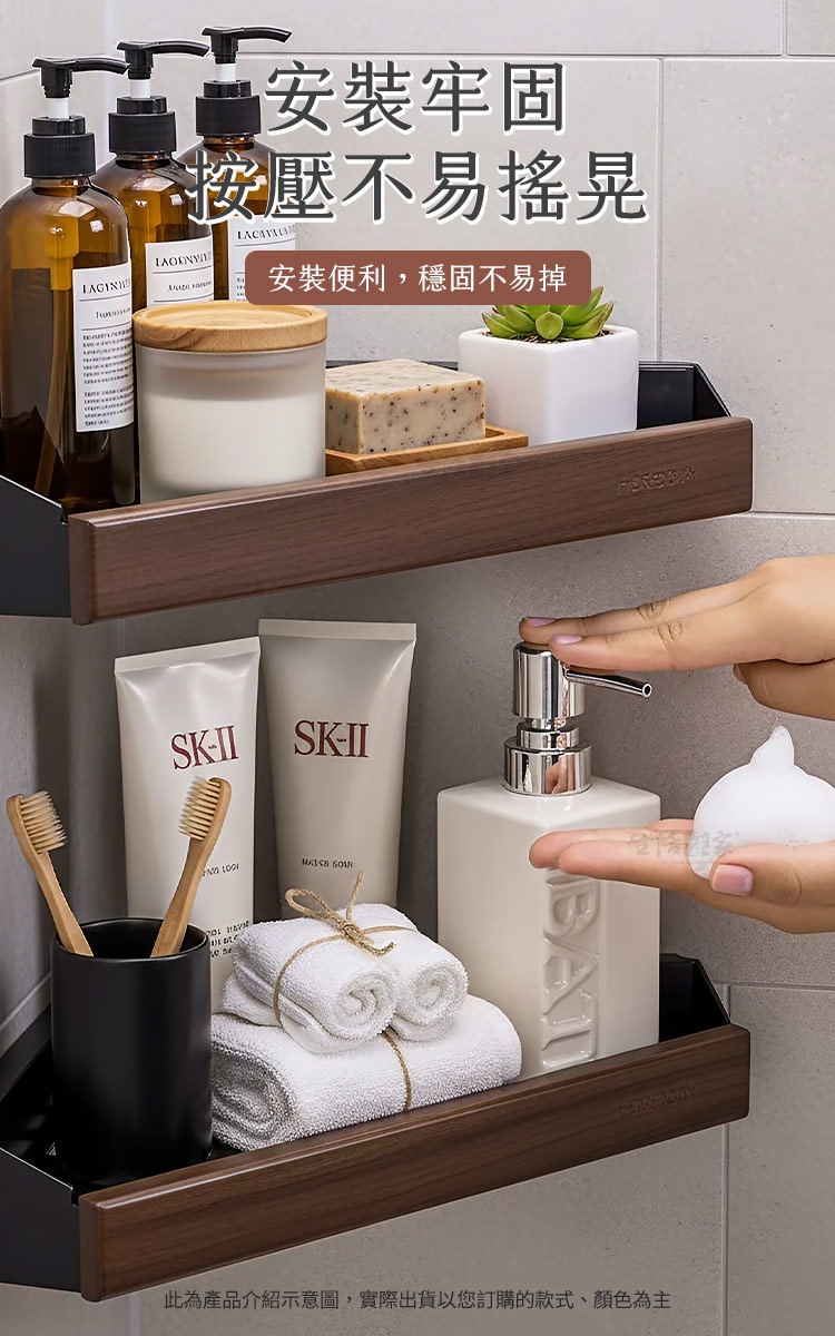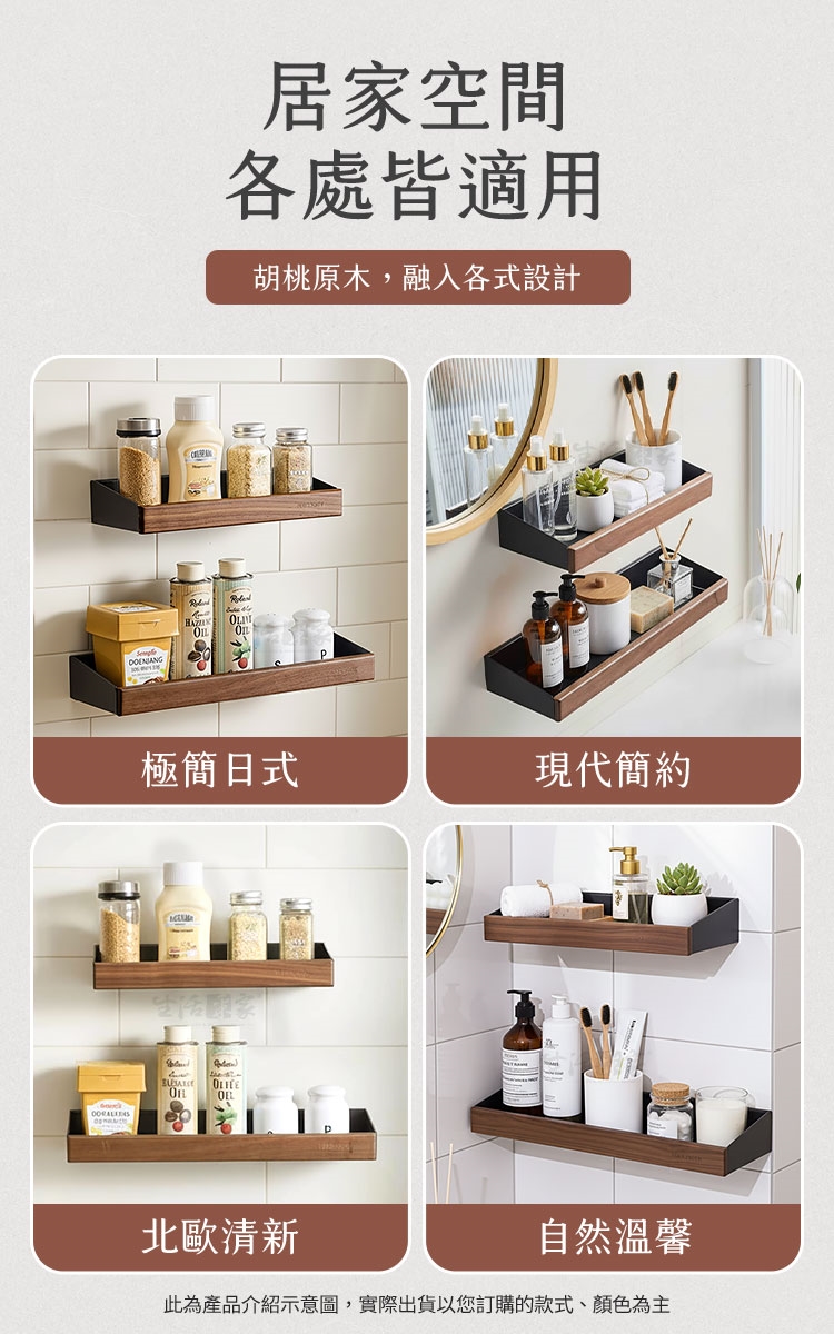 #免打孔置物架 #黑胡桃木 #浴室收納好物 #無痕壁掛 #家居美學