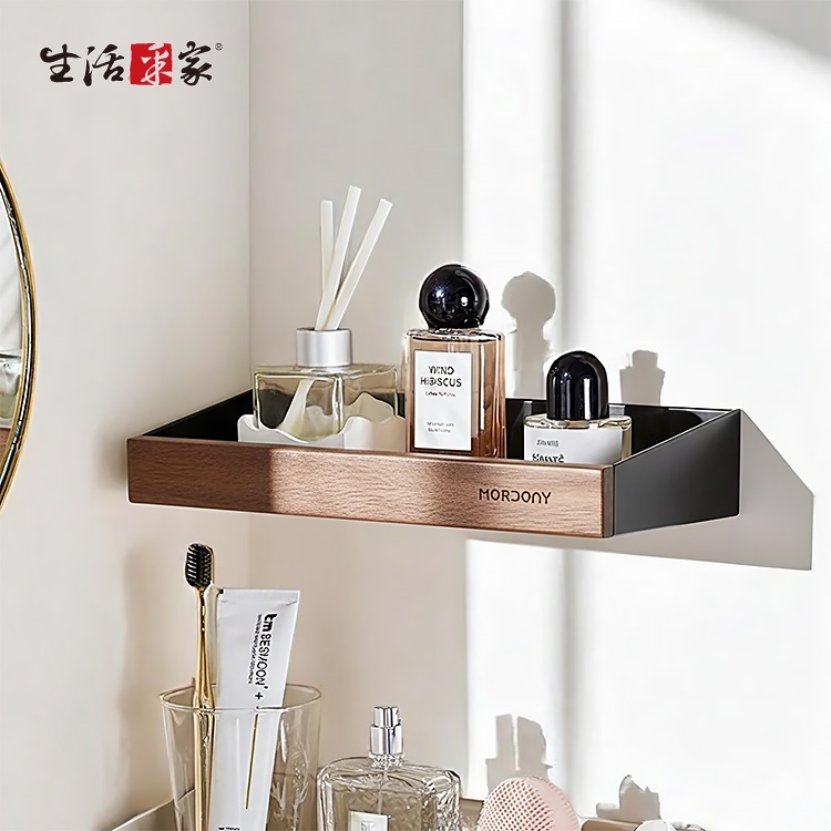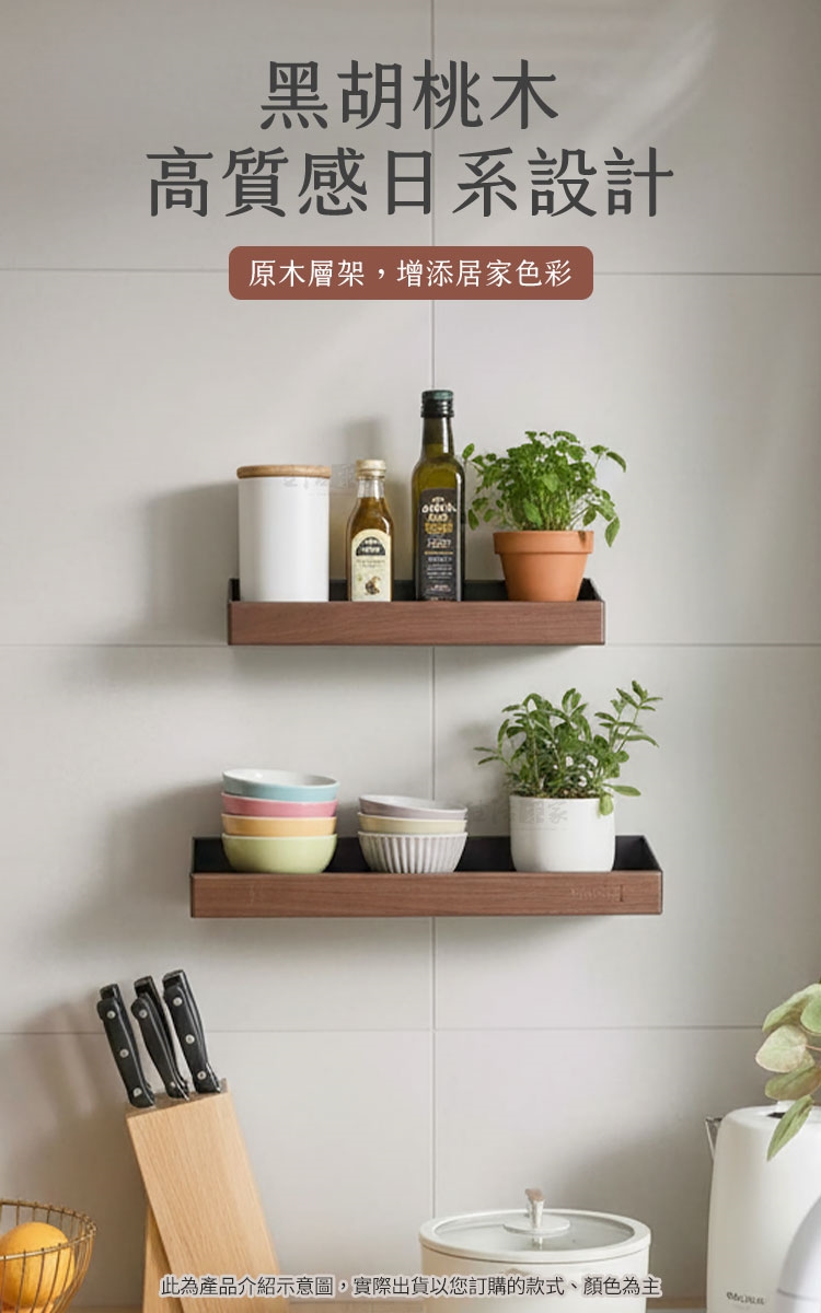 告別雜亂!【生活采家】免打孔黑胡桃木置物架,實現美學與實用的完美結合。