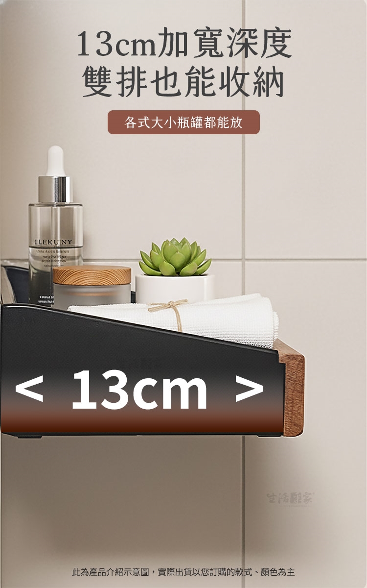 A4: 深度為加寬的 13公分。這樣的深度設計,即使是大容量或較寬的瓶罐也能輕鬆收納,甚至可以實現雙排置物。
