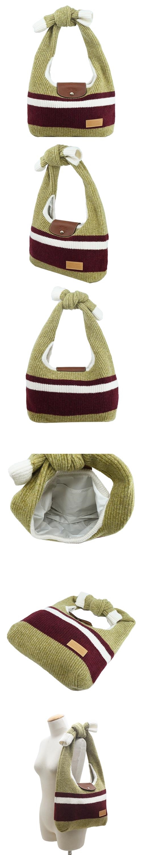 LONGCHAMP LE PLIAGE COLLECTION系列羊毛針織蝴蝶結肩背包(開心果綠x酒紅)