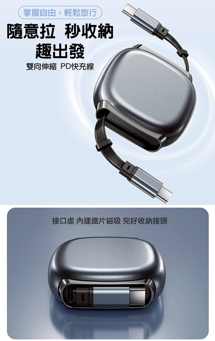 雙向伸縮磁吸快充線,一拉到位不卡線,磁吸收納超整齊,