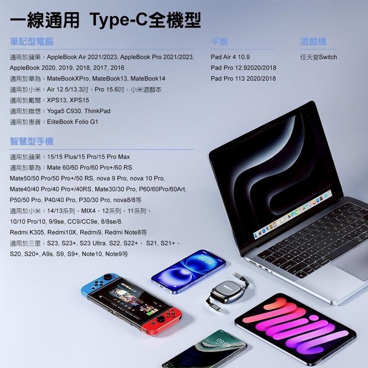 PD快充,手機、平板、筆電都能充,辦公室桌面不凌亂、車上用也剛剛好,