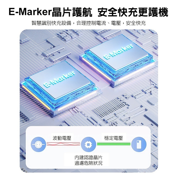 安全穩定充電:E-Marker 晶片+加粗銅芯