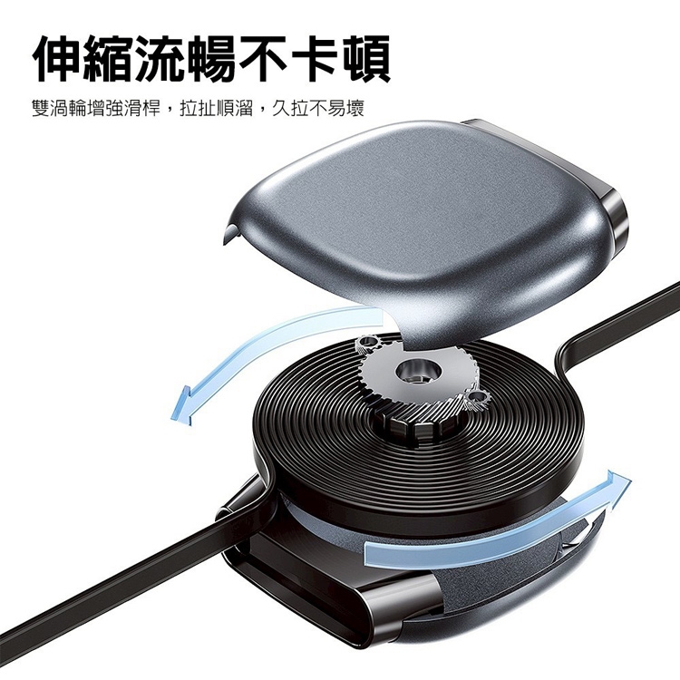 雙向伸縮不卡線:3檔卡點,最長1米,拉了就充