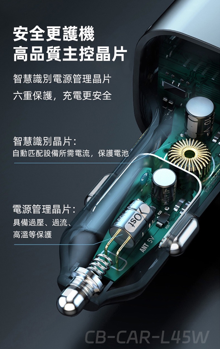 K5 CB-CAR-L45W 5孔45W車用快充+後座延長線,