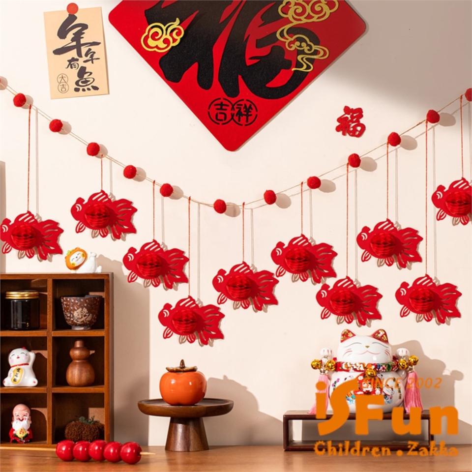 紅色加厚卡紙蜂窩球掛飾,喜氣滿點,讓新春氣氛更濃,