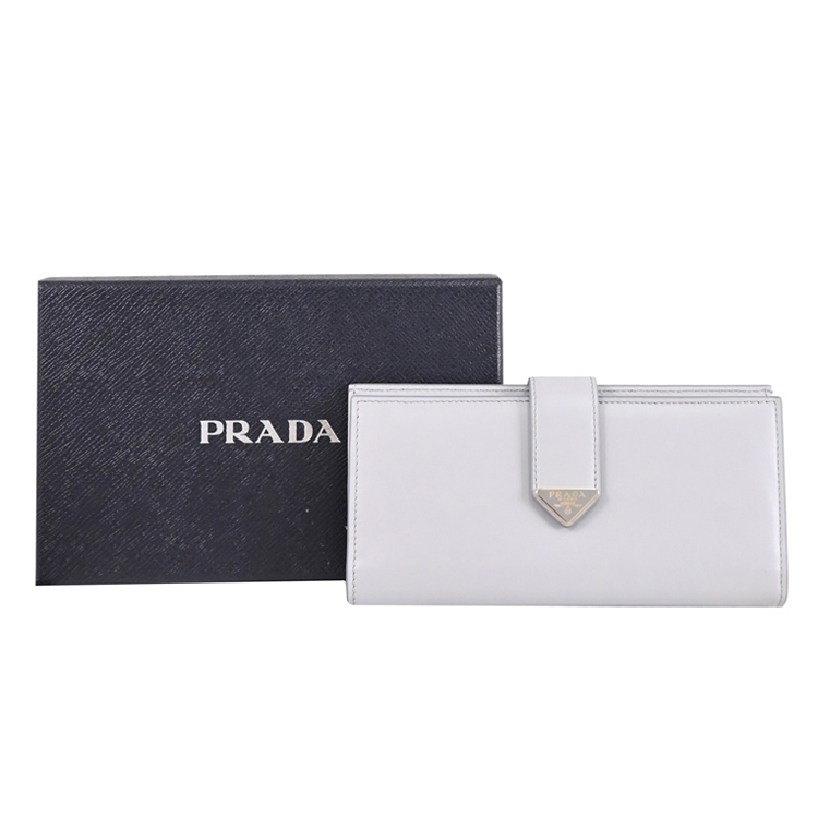 PRADA 專櫃商品零錢長夾,採用品牌金屬三角LOGO+質感牛皮材質,對開扣式,內有9信用卡夾+4貼層+1隔層+1拉鍊零錢袋,熱銷實用款,方便收納,簡約都會的設計款。