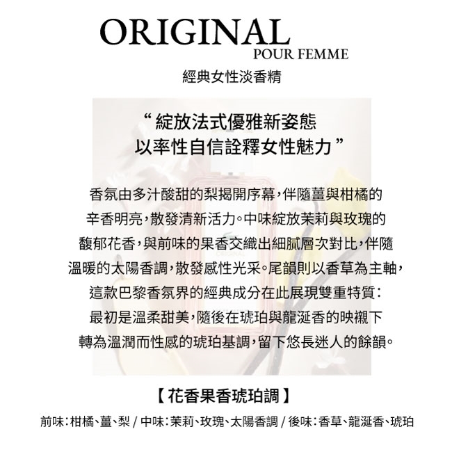 LACOSTE ORIGINAL POUR FEMME經典女性淡香精是一款展現法式魅力的香氛,優雅而隨性,同時自然率真又精緻。