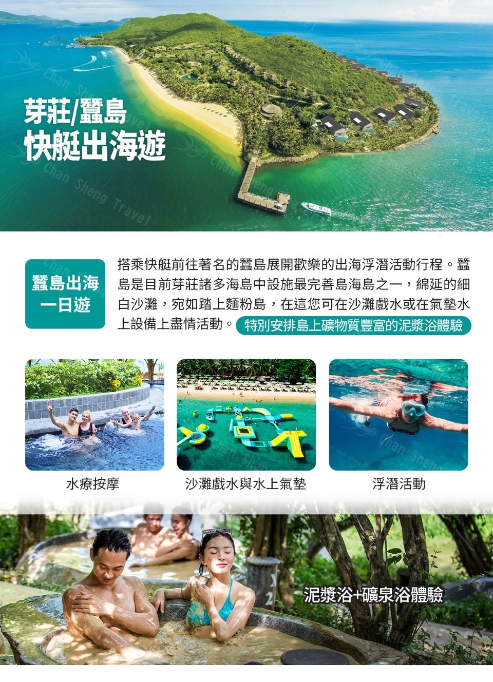 第 三 天芽莊快艇蠶島出海遊【泥浴體驗+礦泉浴+水療按摩+沙灘游泳】