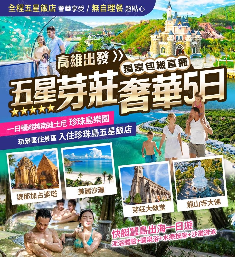 住宿: ★★★★★ DECEMBER 或 TUI BLUE 或 ANNOVA或 Melia Vinperal或同等級【二人一室】