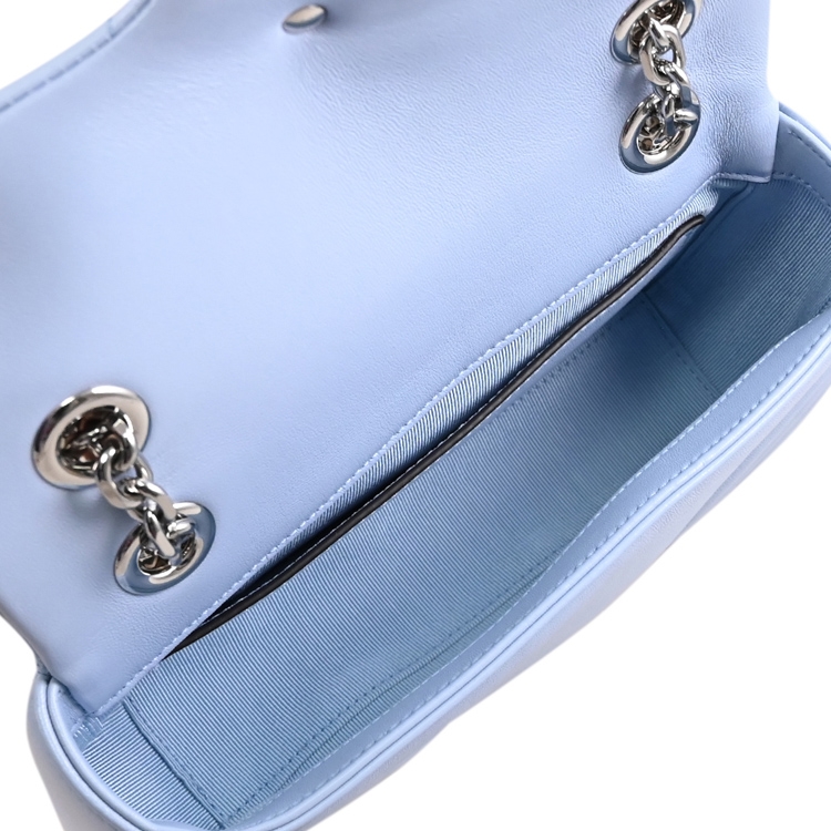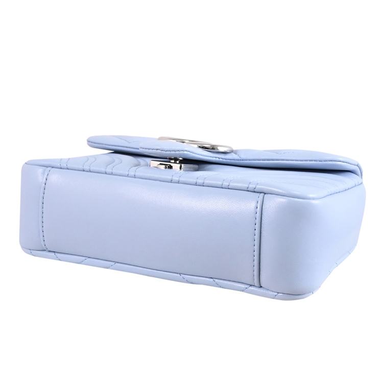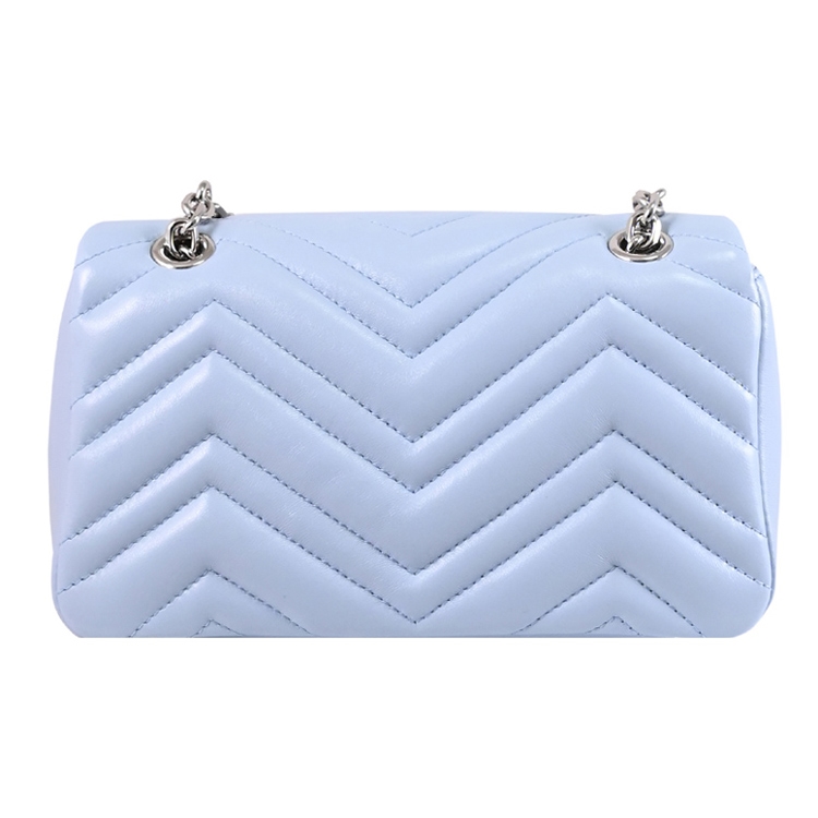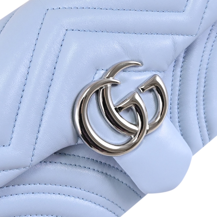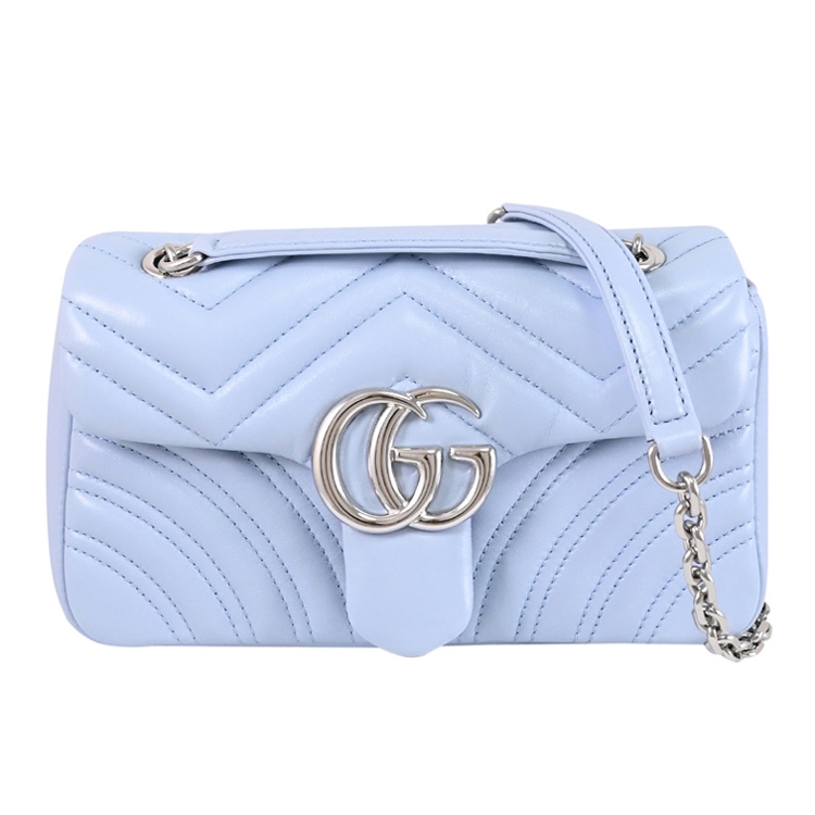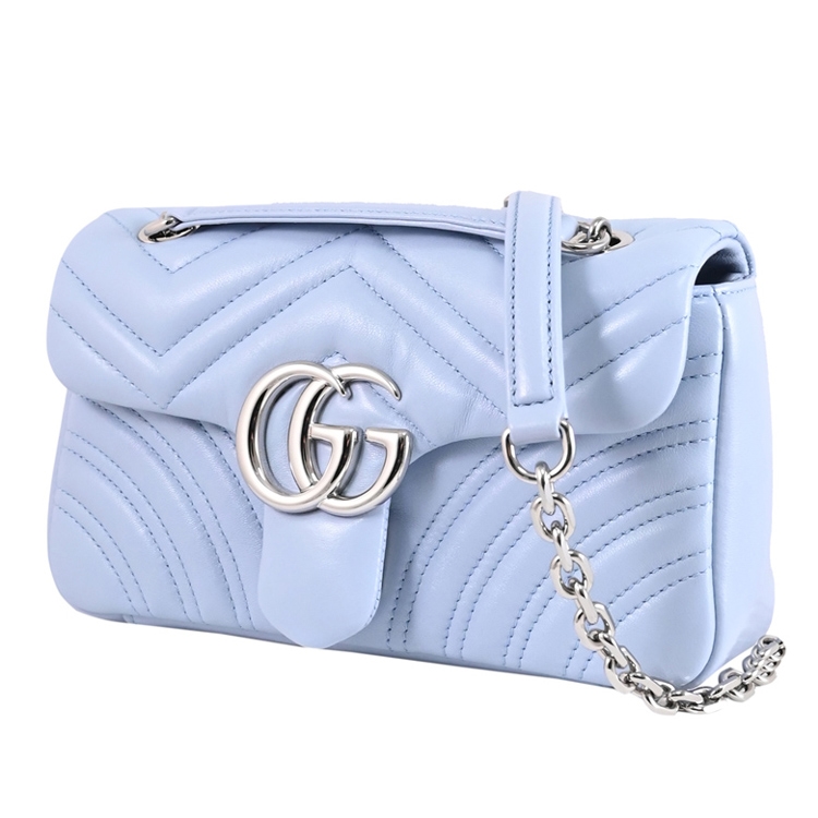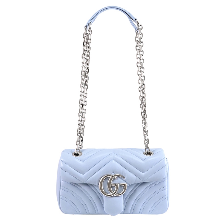 GUCCI 是義大利品牌,以經典雙G LOGO設計著名,也是辨識度極高的品牌,其魅力在台灣持續燃燒。這款GG Marmont包款,經典金屬 LOGO+絎縫造型皮革製作,織布襯裡,翻蓋開口,內有1貼袋供收納,內可放皮夾、手機或鑰匙等隨身物品,配有滑動式鏈條,可肩背或斜背,外出出遊皆合適,顯出低調奢華的質感。
