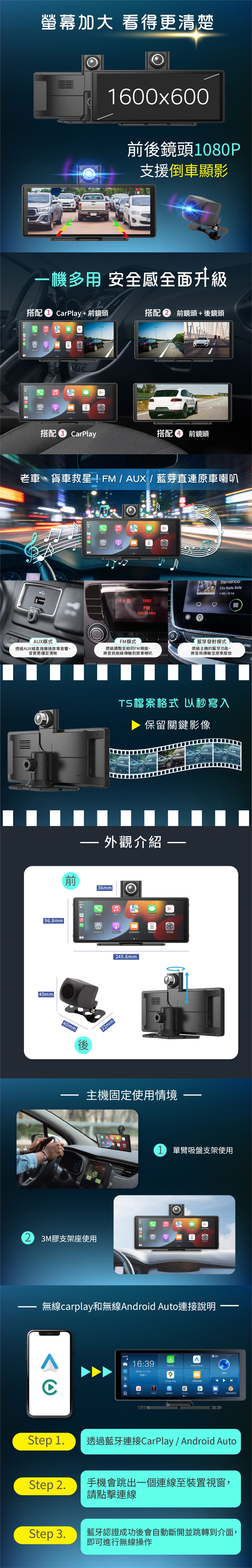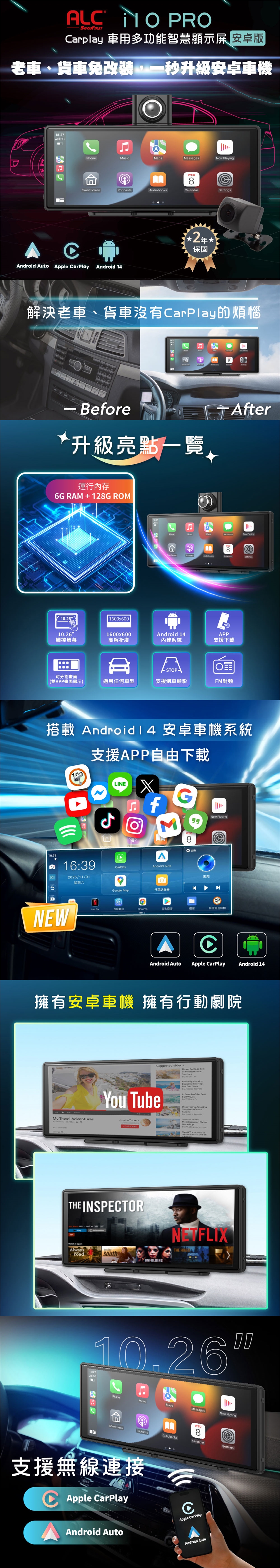 型號/品名:i10 PRO Carplay車用多功能智慧顯示屏(安卓版,內含行車記錄器前鏡頭)