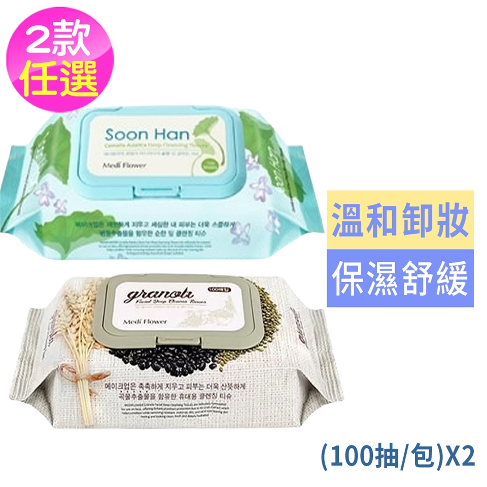 Medi Flower深層卸妝紙巾100抽-小麥/積雪草 任選2包