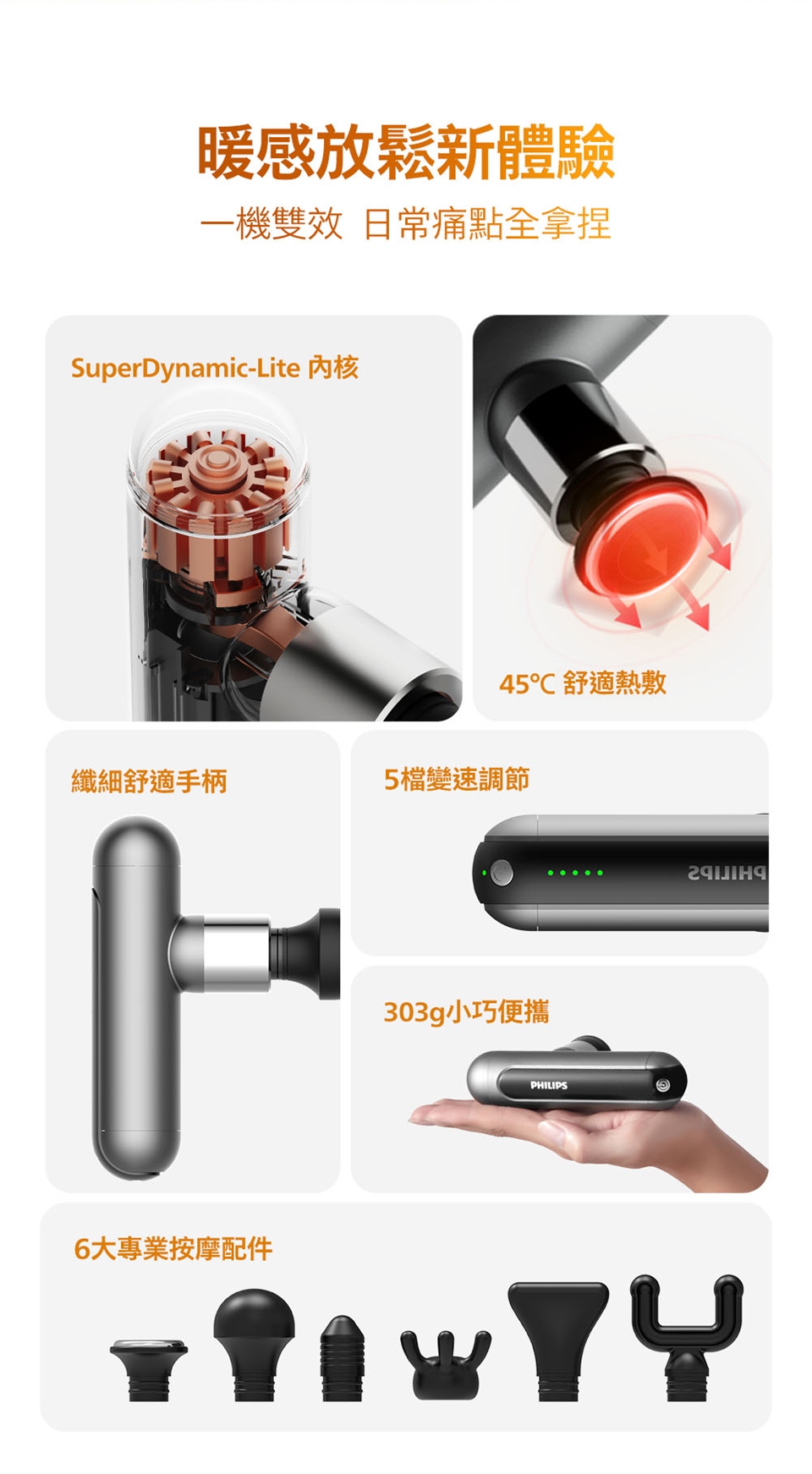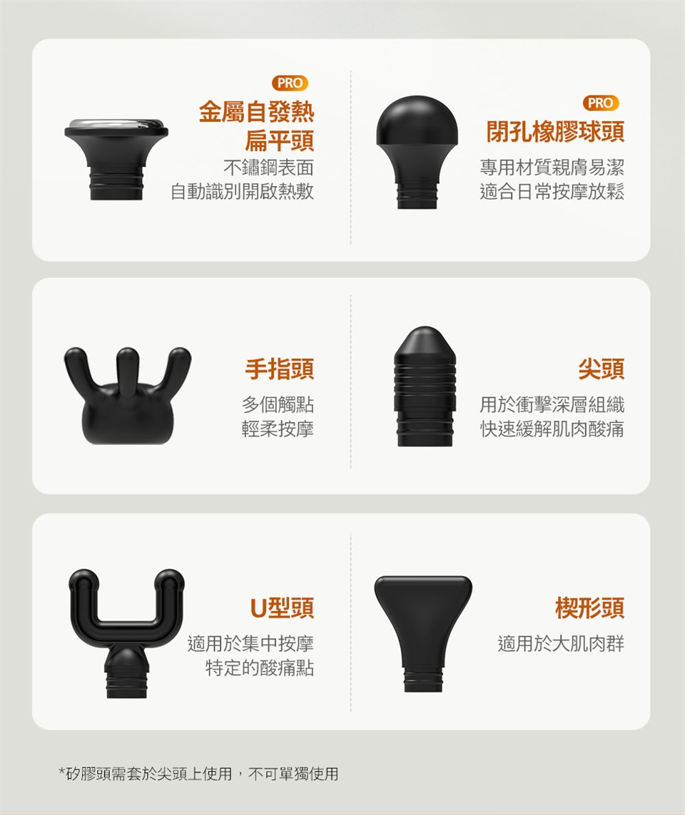 6 個按摩頭,滿足您的不同需要