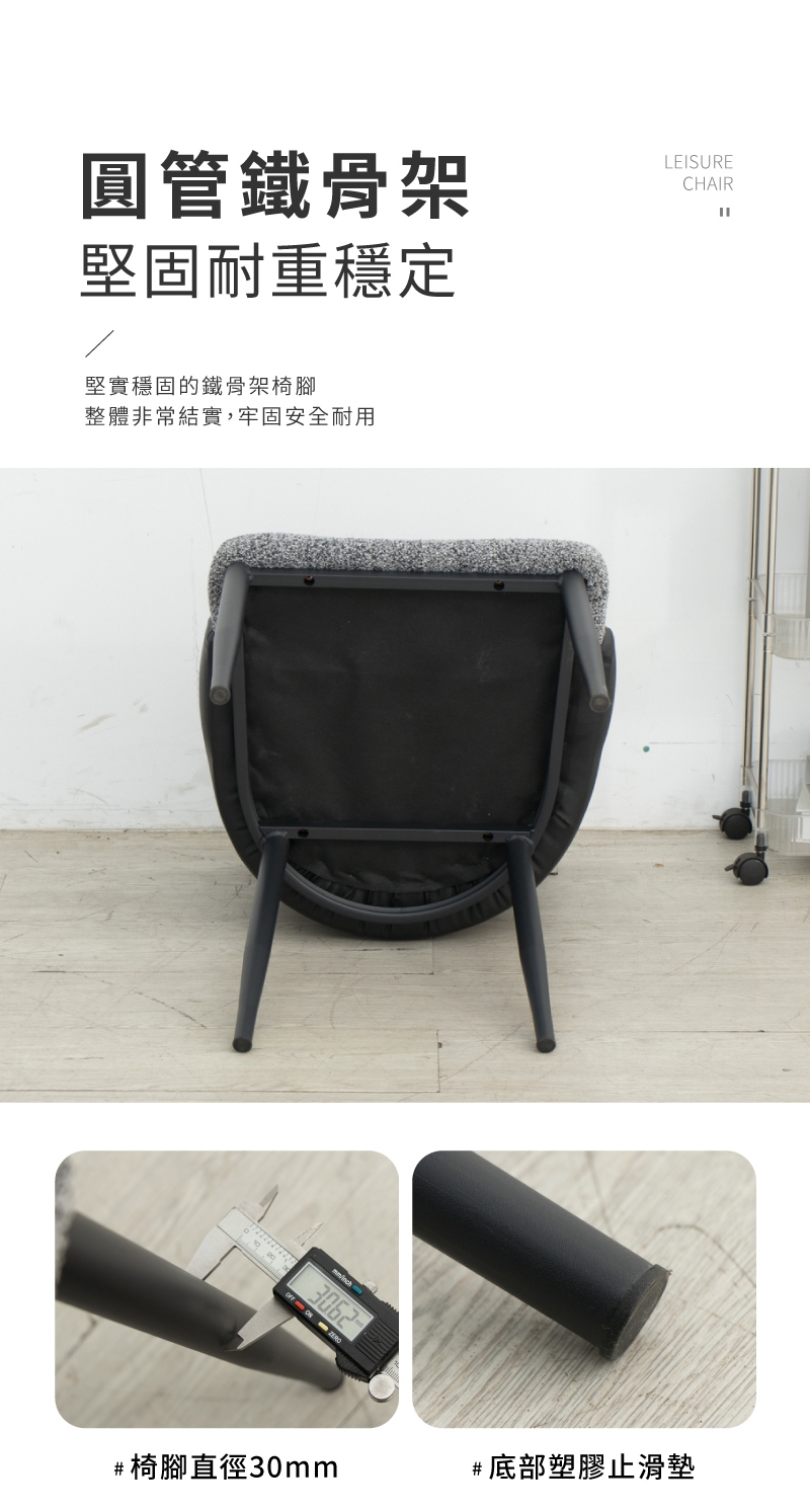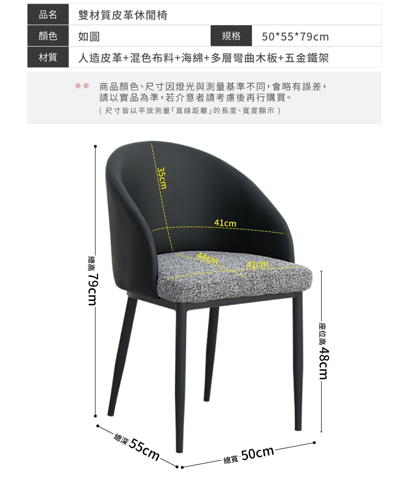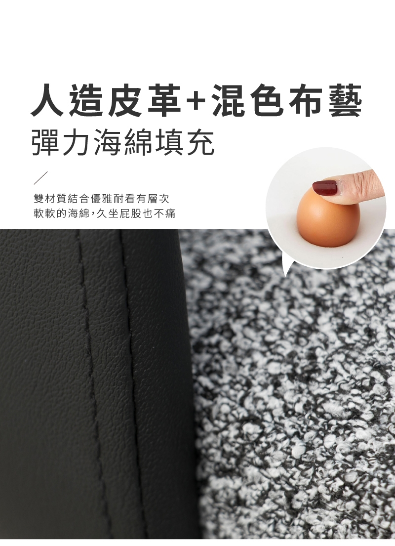 材質:人造皮革+混色布料+海綿+多層彎曲木板+五金鐵架
