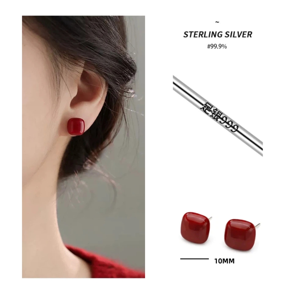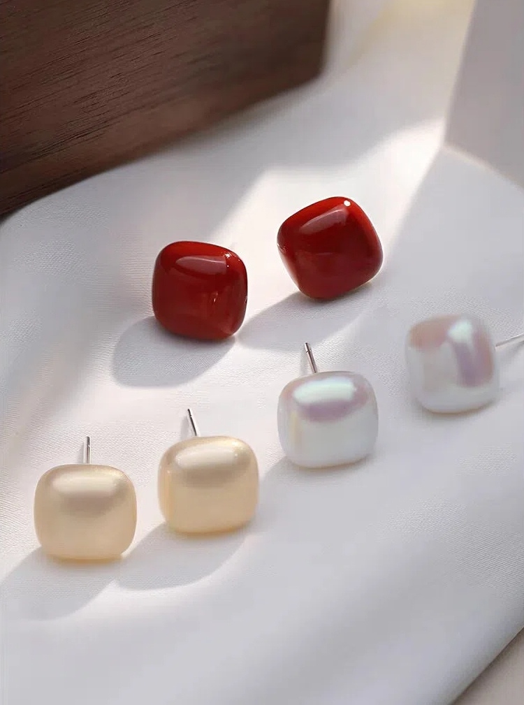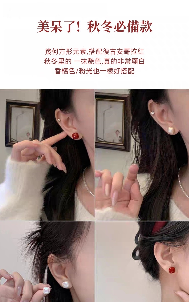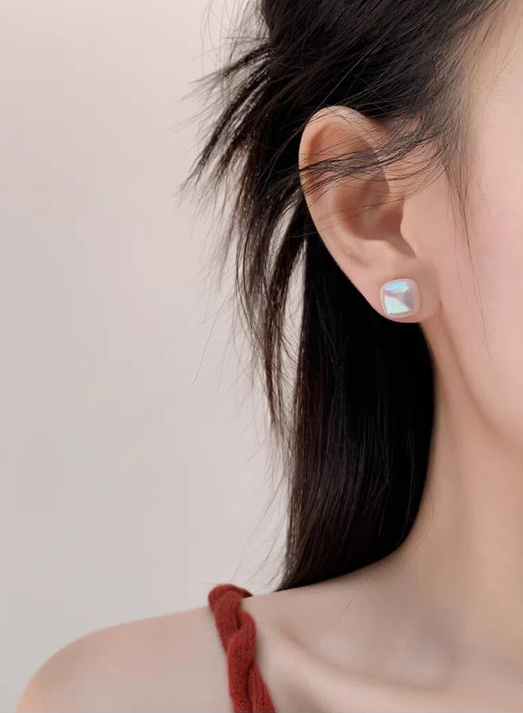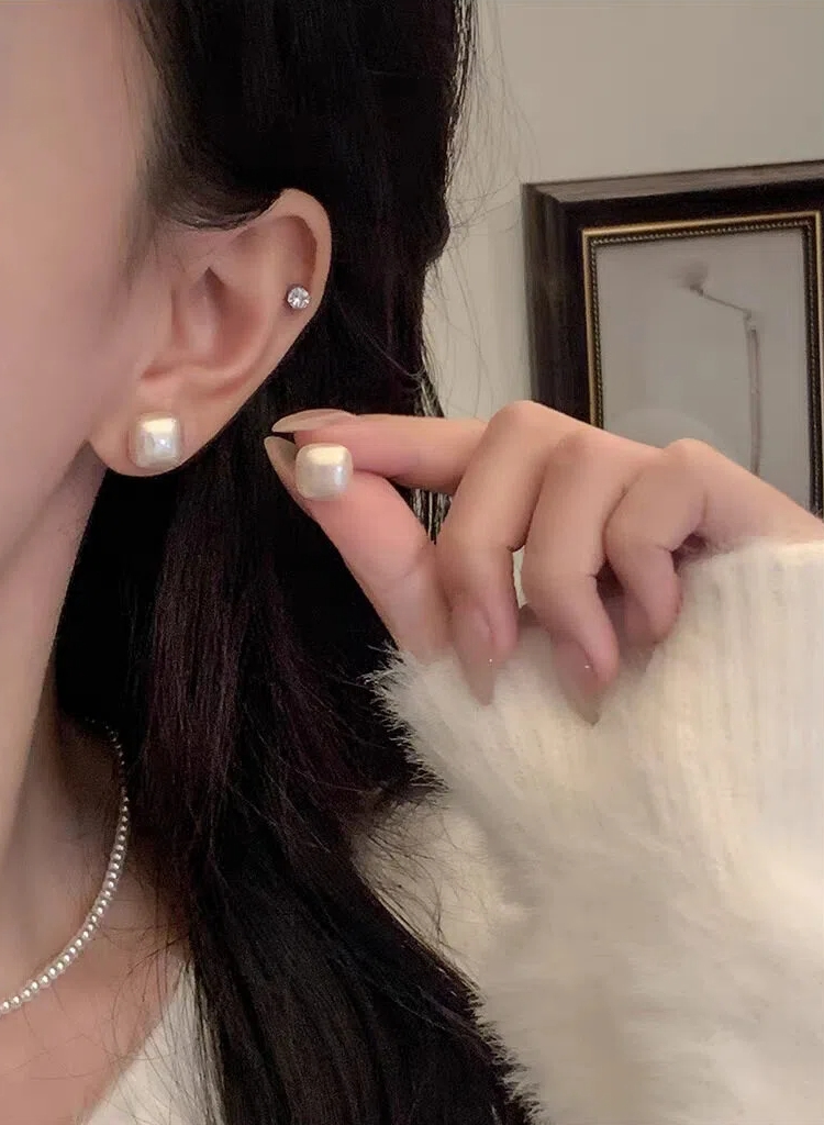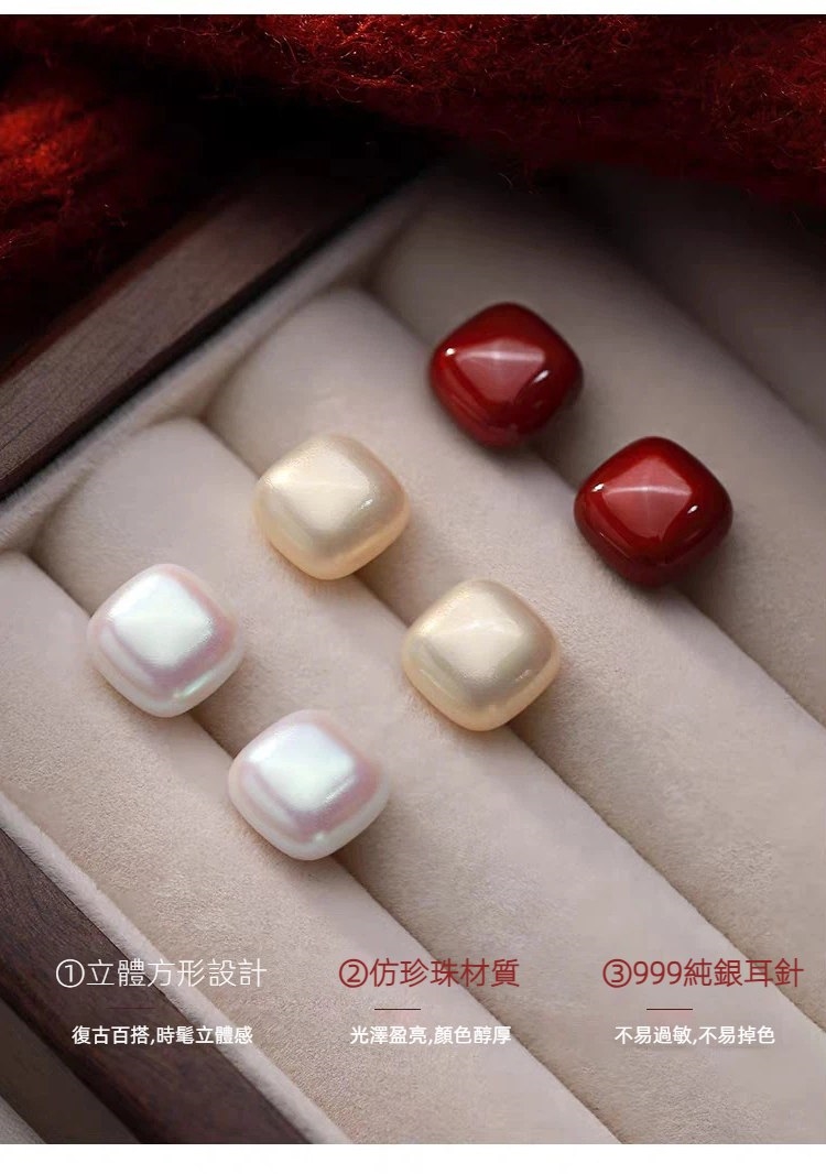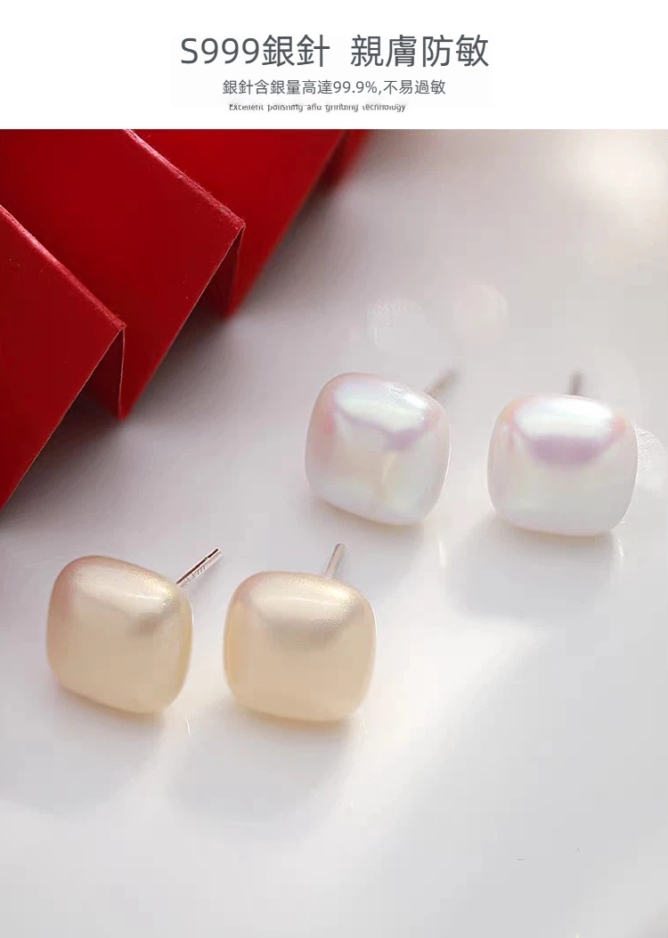 【A&R】輕奢簡約S999純銀幾何方糖珍珠耳釘款耳環