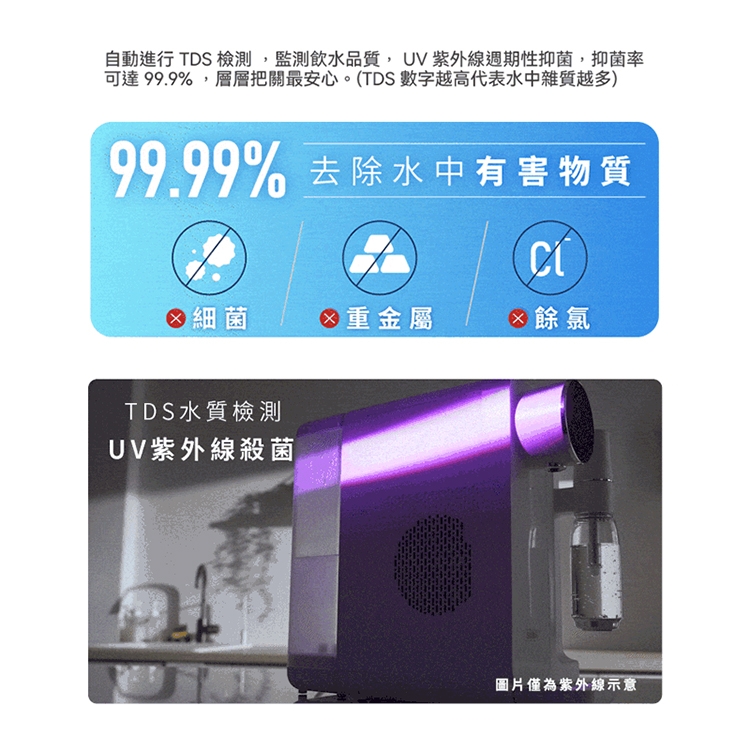 淨水箱配置UVC燈,再次消毒淨化