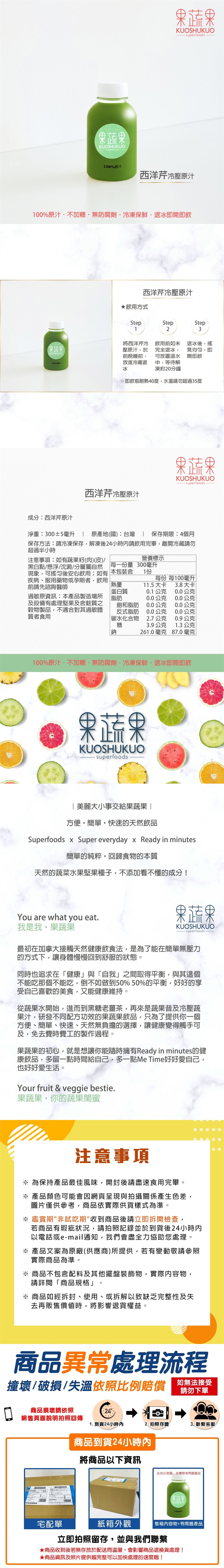 商品組合/規格:西洋芹冷壓原汁(300ml/瓶)