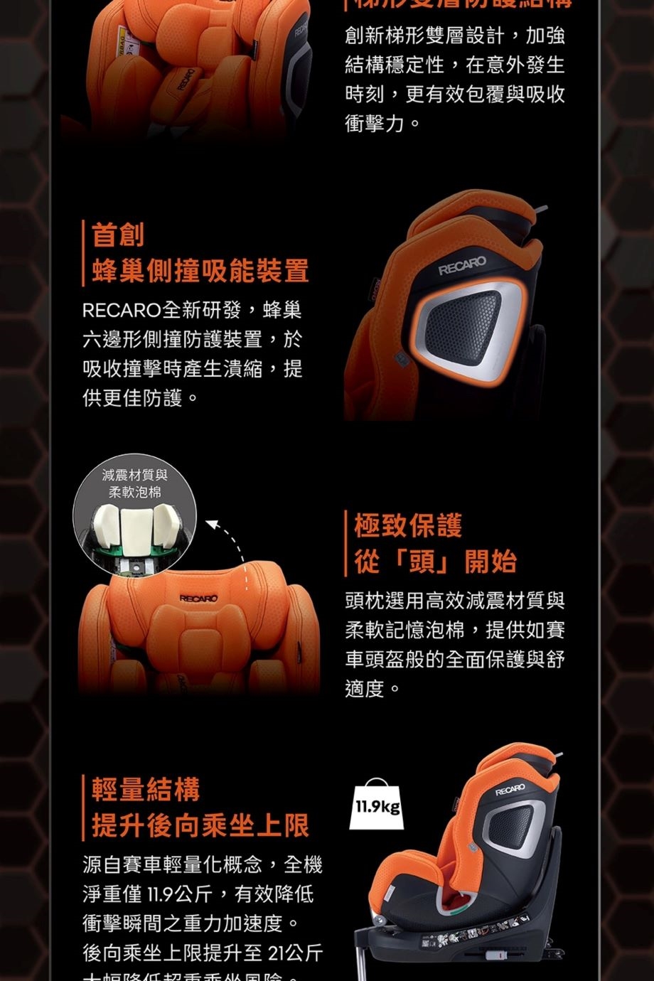 5. 11.9公斤輕量化機體,後向乘坐上限突破至21公斤。