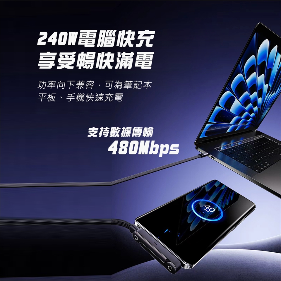 ★240W電腦快充 支持數據傳輸 480Mbps