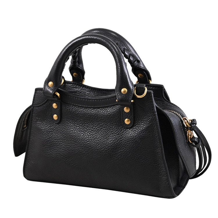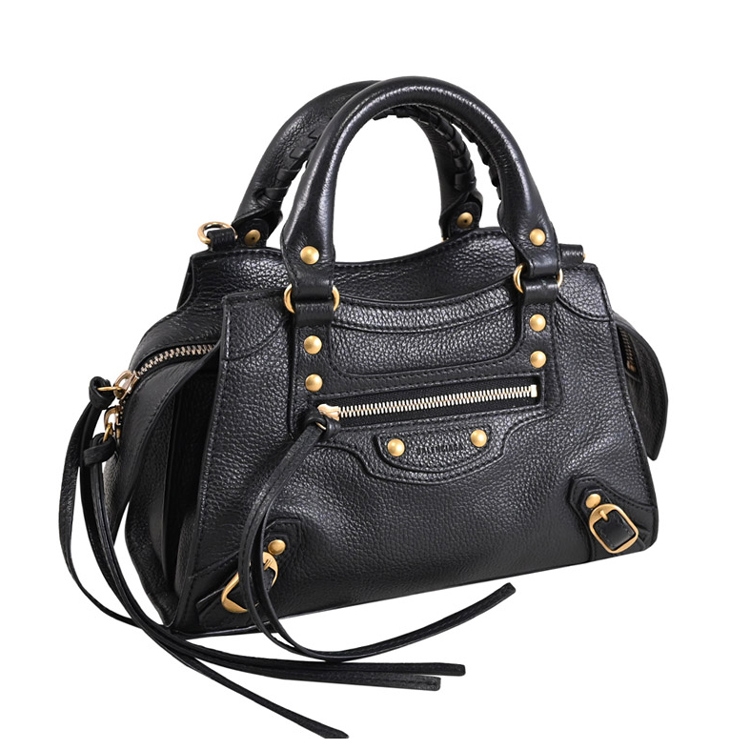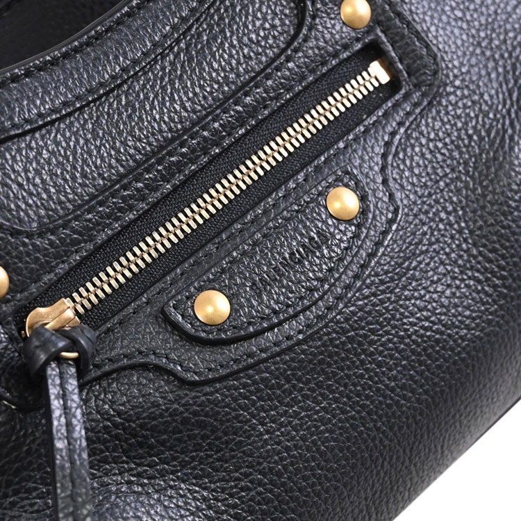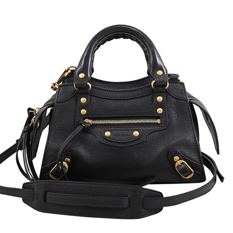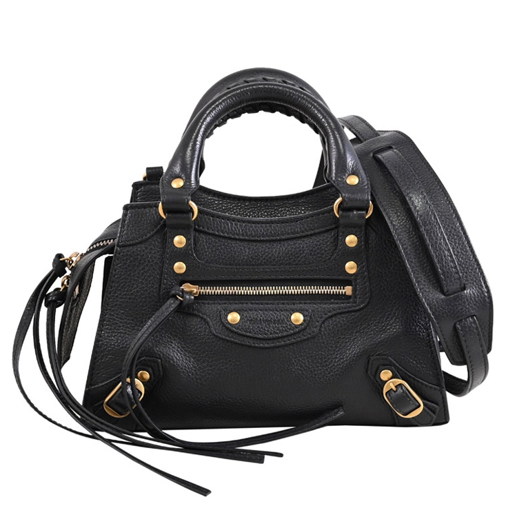 BALENCIAGA 專櫃Neo Classic Mini系列,經典兩用機車包,鉚釘及烙印LOGO+荔枝牛皮材質,皮革襯裡,富有現代感,拉鍊開口,內有1貼袋+外1拉鍊袋,內可收納手機、中短夾及鑰匙等隨身物品,可斜背或側背及手提攜帶,都會時尚感,搶眼又好搭風格。
