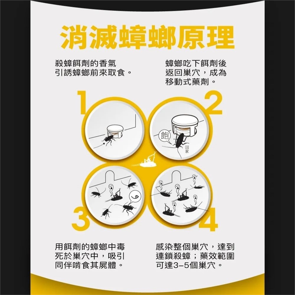 建議點狀施於廚房、牆角、裂縫等害蟲出沒處,避開食物保存區