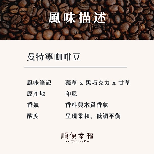 順便幸福-隨行手沖杯-苦甜焦香曼特寧咖啡豆
