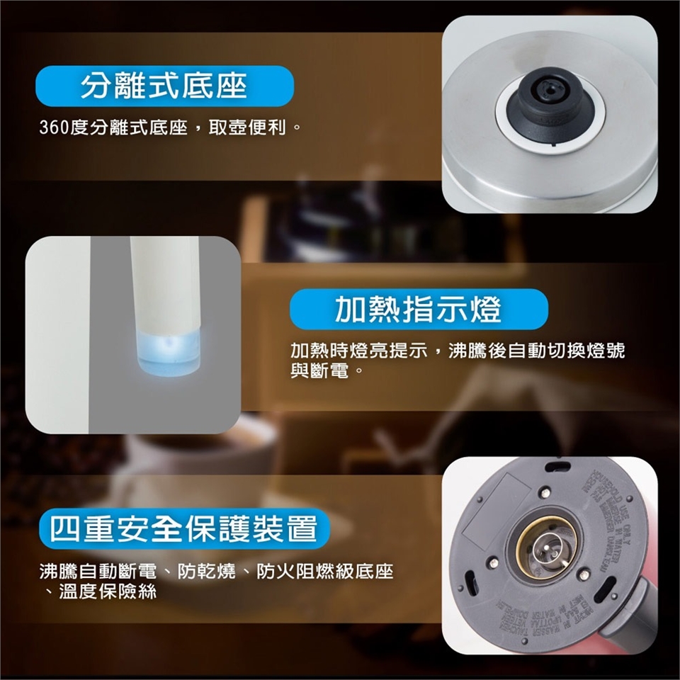◆安全保護裝置:快煮沸騰自動斷電、防乾燒、防火阻燃級底座、溫度保險絲