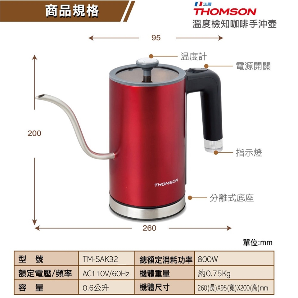 THOMSON 溫度檢知咖啡手沖壺 TM-SAK32∥四大安全保護裝置