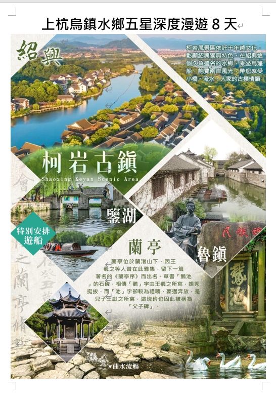 【第3天】紹興杭州【柯岩風景區(柯岩古鎮、魯鎮、鑒湖遊船)、綠野仙蹤 ~青山湖水上森林公園(含遊船)~入住杭州臨安萬豪酒店】