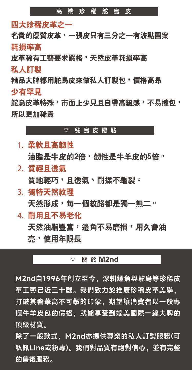 ※鱷魚皮.鴕鳥皮皆屬於天然珍稀皮革,每一只包都有獨特的天然動物紋路
