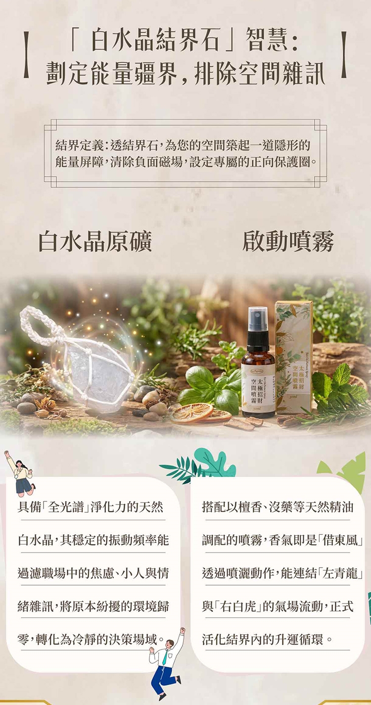 單品尺寸:六白武曲黃銅牌:6*4.2±1cm;白水晶結界石:約3~5cm;財源天母心咒袋(綠):11.5*13.5cm;珍品開運秘法小卡:7*7±1cm